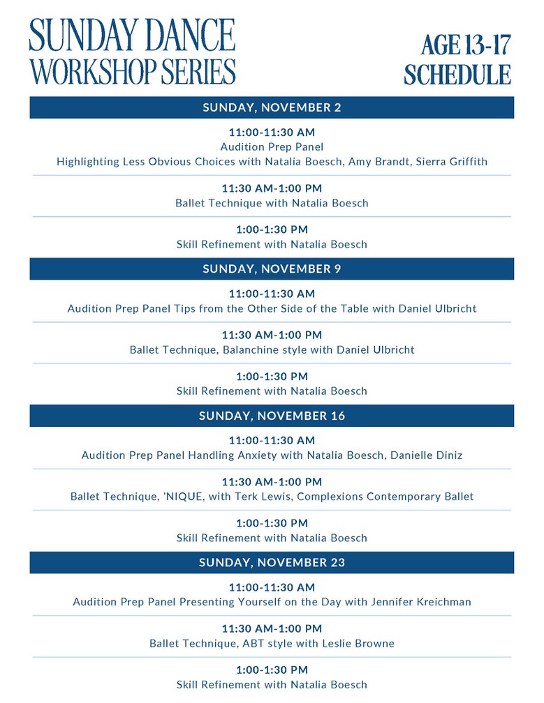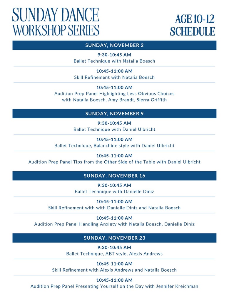 Minis will be taught by Natalia and other top-tier ballet and dance teachers. All classes are taught by Natalia unless otherwise noted.